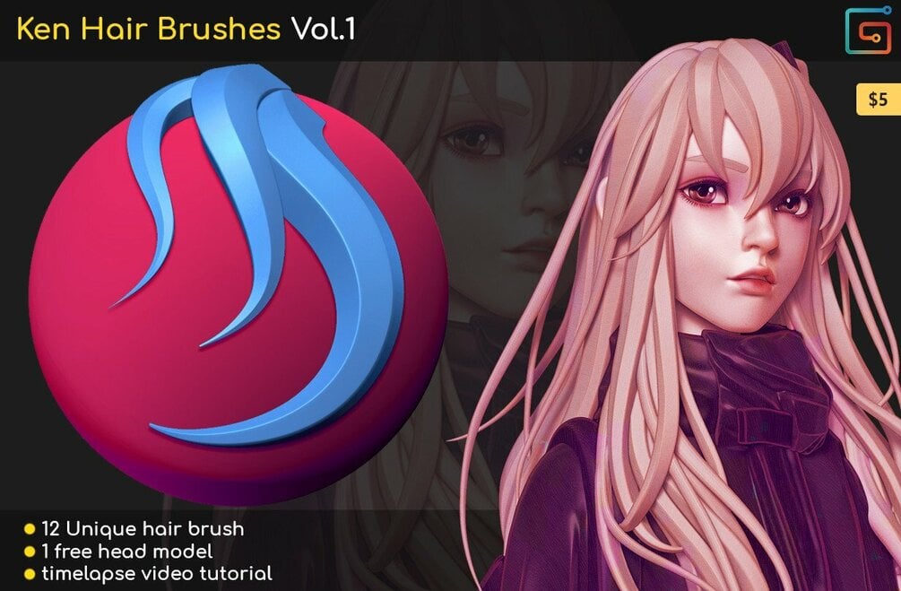 Custom hair brushes Vol. 1 for Character creation in Zbrush.
